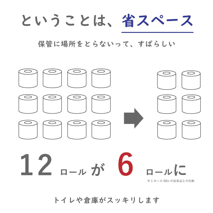 たっぷり長持ちで、紙の減りが半分に減ったように感じられます。ひとつで2倍長持ち!