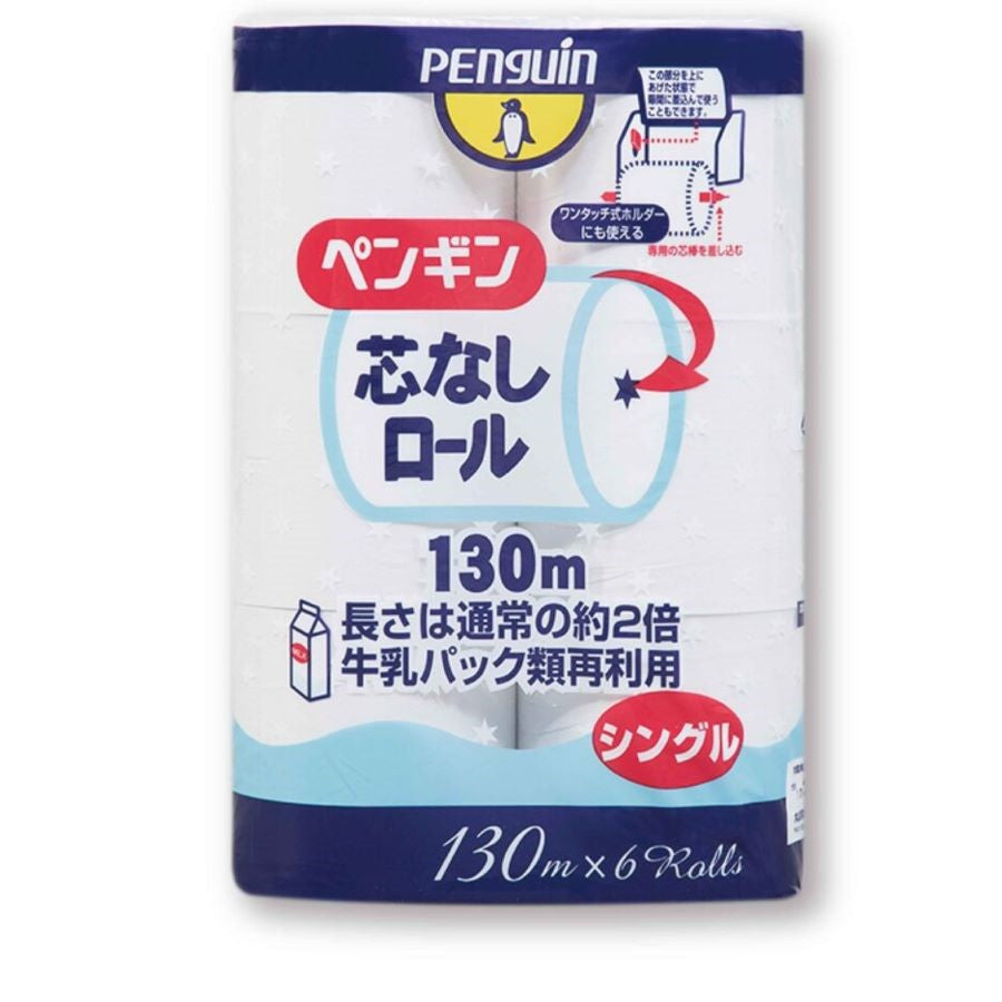 ペンギン コアレス 芯なし 細芯 シングル 130m 6ロール重ね