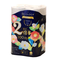 エコロジー2倍巻プレミアムは、一般的な50mシングルロールの2倍の長さ、100mを実現しました。