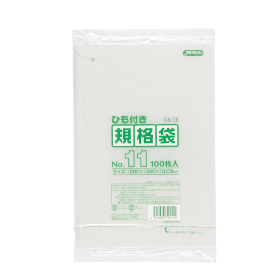 ジャパックス 規格袋 LK11 ひも付き No.11 透明 100枚パック入数