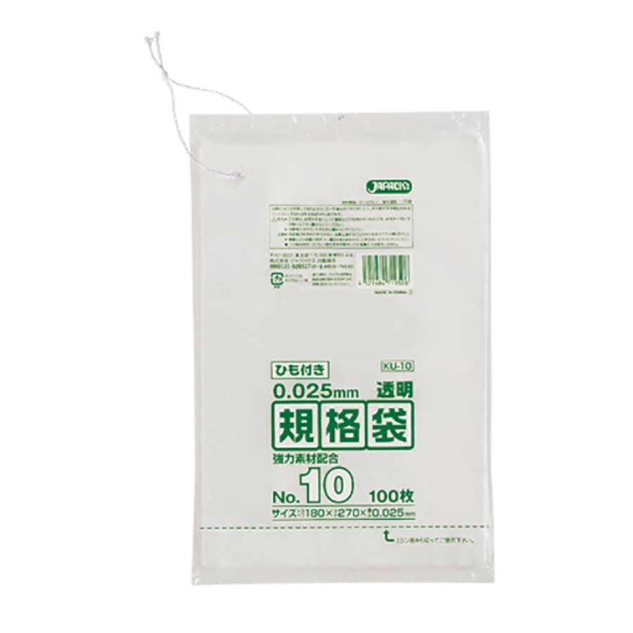 ジャパックス 規格袋 ひも付き KU10 No.10 透明 100枚パック入数