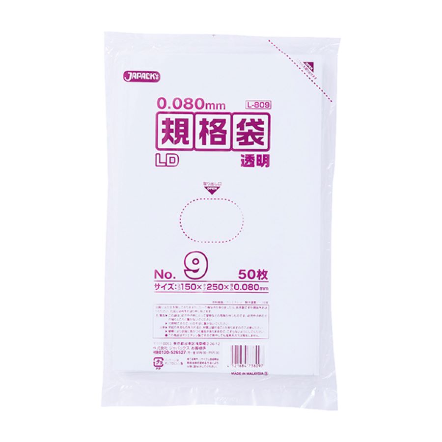 ジャパックス 規格袋 L809 No.9 透明 50枚パック入数