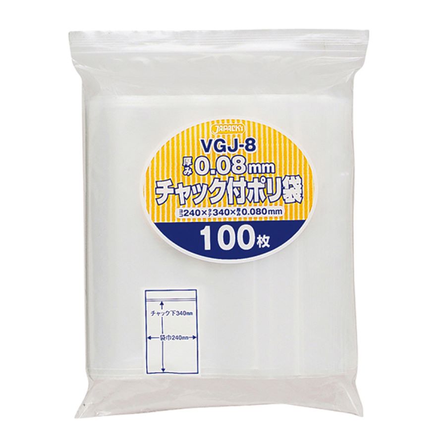 ジャパックス チャック付ポリ袋 厚口 VGJ-8 透明 100枚パック入数