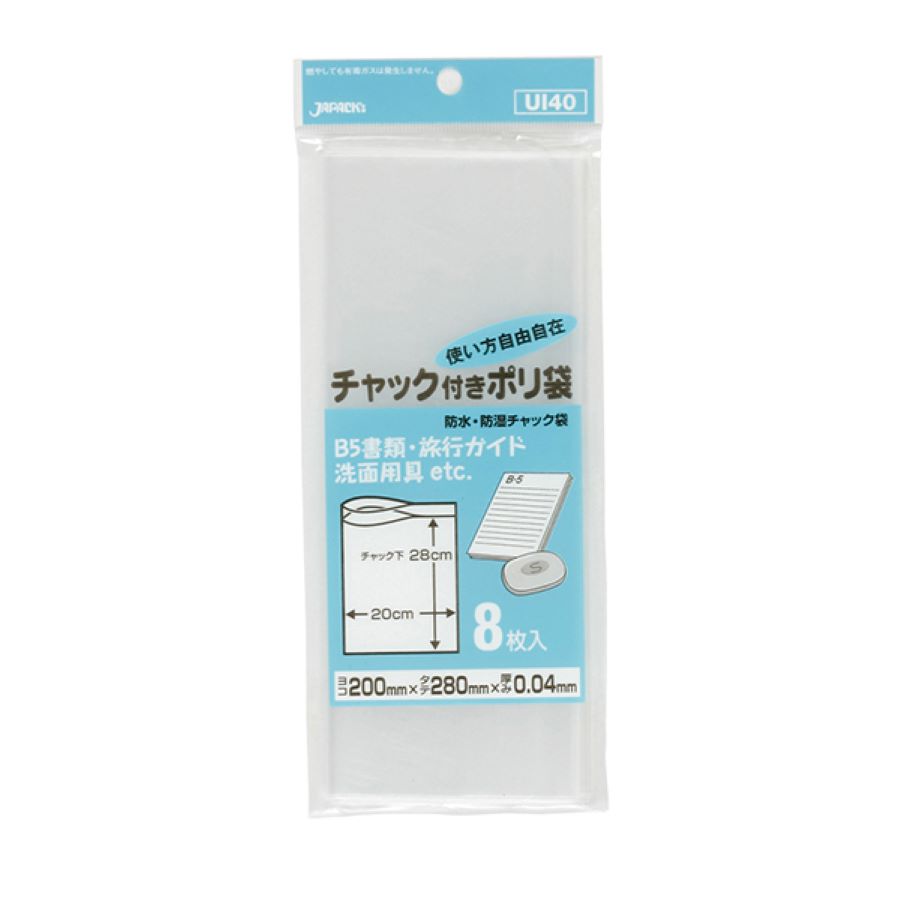 ジャパックス チャック付きポリ袋 UI40 透明 8枚パック入数